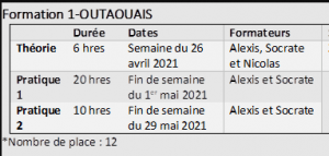 Voici les informations pour les formations que nous offrirons dès le printemps. D’autres formations seront offertes à l’été et à l’automne.